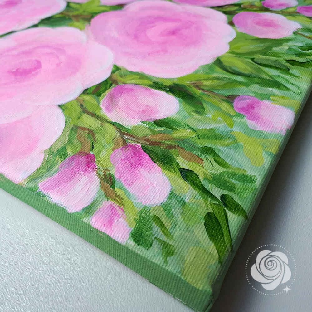 Boki podobrazia dla estetycznego wyglądu zostały pomalowane, więc można obraz powiesić bez oprawy w ramę.